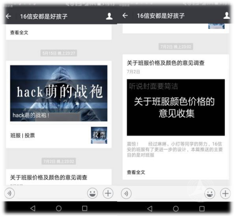 我们的班级公众号:16信安都是好孩子。用于记录班级活动、工作、学习交流与决策,每一篇精心制作的推送都是我们16信安的故事。同时,我们使用钉钉,“自顶向下,逐步求精”,钉钉是当下包括阿里巴巴等大型互联网公司使用的线上即时通讯App,我们用钉钉发布通知信息,线上交流活动,钉钉的使用也使我们16信安更加强大。因为我们,因为科技,高效工作不是问题。