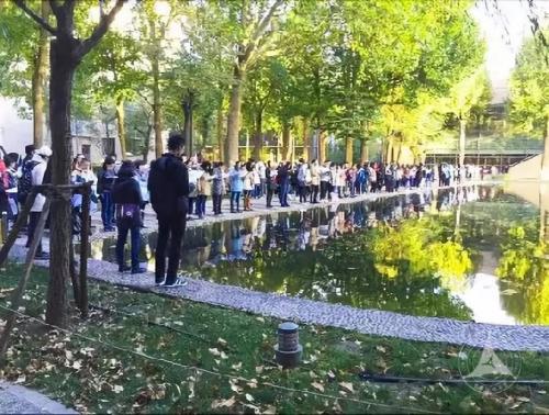 晨读虽苦,但同学们总能苦中作乐。“上个学期我们班长不小心把晨读表弄掉到湖里,虽然我们全班都去捞,但它还是飘走了。”17西班牙语张馨怡说,每次大家站在钢琴湖边,总是会想起飘到湖上的那张晨读表。“前段时间钢琴湖抽干变成了钢琴坑,我们觉得很好玩,甚至还会站到里面去晨读。”17英语的姚小翔说。