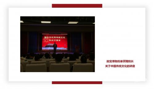 除了用理论知识武装头脑,我们在理论学习的基础上还参加了丰富的实践活动,如前往故宫报告厅参加故宫博物院单霁翔院长关于传统文化的讲座,体会中华文明的魅力。