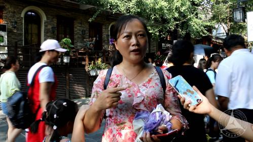 离开蜀江锦院文创店后,实践团的同学们来到宽巷子的入口,随机采访来往的路人。同学们提出了关于文创购买者的年龄分段,消费者对文创产品价格的接受程度以及对文创产品发展的展望与建议方面提出了一些问题釆以采访游客或当地居民。