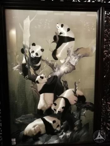 文创产品的形式多种多样,有锦绣的扇面,文具,桌面屏风,以及一些蜀锦的丝巾,手提包等。产品质量上乘,作工精美,如图一中的熊猫蜀绣,用蚕丝顺着大熊猫的形体刺绣,在灯光的照耀下显得十分有体积感,熊猫也因此栩栩如生。还有一些产品更是融入了当代艺术中简单多边形和抽象艺术的概念,与时俱进,使社员们大饱眼福,拓宽了同学们在文创产品形式方面的视野。