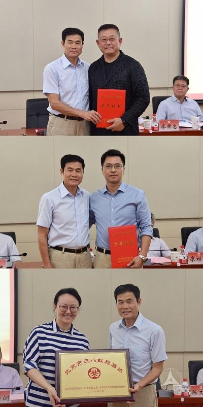 陈文申书记为2018年“北京市师德先锋”获奖教师、“北京市三八红旗集体”获奖单位颁奖