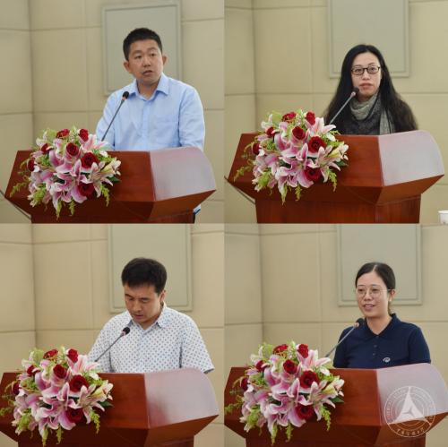 2018年“北京市师德先锋”获奖教师代表曾祥敏、“北京市三八红旗集体”获奖单位播音主持艺术学院教师代表喻梅、校级“师德标兵”获奖教师代表张开、校级教学名师奖获奖教师代表孙振虎、2017年校级优秀教学奖获奖教师代表王铉、教龄满30年教职工代表马少刚以及2018年新入职教师代表邓雅菱等老师围绕“弘扬高尚师德,潜心立德树人”的大会主题作交流发言。