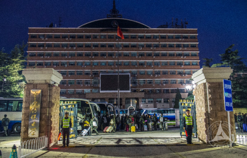 (通讯员 那宇奇 魏贝贝 摄影 陈逸飞 蓝天 那宇奇)9月16日清晨,天刚蒙蒙亮,我校2018级的近2600名军训师生陆续集结到学校主楼周围,整装待发。大家按照各学院编队计划和指定位置,在带队老师的引导下依次登车。各学生培养单位和学生处等部门领导、辅导员等前来欢送师生。学校保卫处提前清理主楼周边道路并在夜色中指引车辆入校、驶出,保障交通顺畅、安全。至6:30,最后一辆满载军训师生的大巴缓缓驶出南校门。