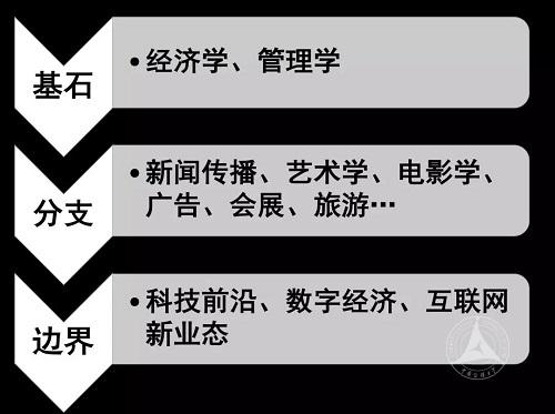 文化产业是一个应用型、交叉性学科:经济学和管理学是基石;传播新闻学、艺术学、电影学、广告学等分支学科是支撑;科技前沿知识和以数字经济为核心的互联网新业态在不断拓展学科边界。