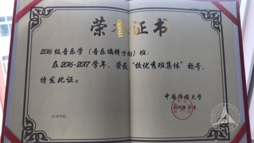 时光飞逝,从入学至今,我们不断摸索探寻适合班级、适合同学们发展的道路,逐渐形成属于2016级音乐编辑班的独特风格:完善的班级制度建设充分实现同学们的自我管理;将学习、公益、实践三者有机结合,班级活动大放异彩;班级内高度的凝聚力与同学们的个性化发展之间实现互补;同学们温暖友爱,求同存异,共同进步,学会包容。在2016-2017学年,我班5名同学获得校级各类荣誉,3名同学获得校级奖学金,同时,我班荣获“校级优秀班集体”光荣称号!