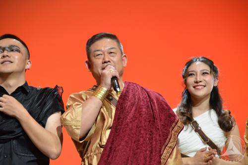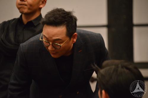 当然,最令人欢喜的是李立宏老师的表演和剧中一段展现内心挣扎的说唱。作为我校表演专业负责人和资深的配音演员,李老师一向给人德高望重、沉稳温和的感觉,当剧情发展到他因为怎么处置安提戈涅而犹豫不决时所爆发而出的说唱,震惊了现场的观众,充分体现出人物内心挣扎的剧烈程度。据导演孙德元透露,最一开始李立宏老师内心是拒绝这个想法的,但是他在排练中和李老师充分交流,说明了克瑞翁能够说唱的动机,用说唱来充分表现人物内心活动,同时造成一种惊奇的反差和间离,让观众更加注意去听角色说的话,最终李老师同意在剧中说唱了。“李老师是非常给力的,我们也知道李老师很有压力。但这是一次大胆而有趣的尝试。” 导演孙德元说道。