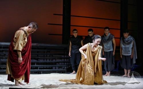 在《安提戈涅.remix》这部戏中,不仅有相声,更有中国传统戏曲的身影——在两名歌队诉说前史的过程中,其中一名歌队的表演运用了京剧的念白和身段,令在场的观众拍手叫好。 “不仅这部戏,在以后的更多作品中,我都会尝试将中国传统艺术融合进去,这是我们的瑰宝。”