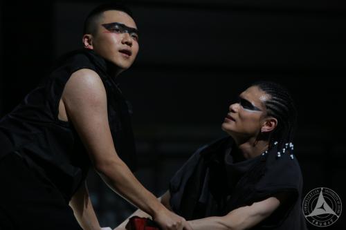 《安提戈涅.remix》由表演专业“小白杨剧社”的本科生与李立宏老师、韩越老师同台共演,依托于古希腊索福克勒斯的著名悲剧《安提戈涅》进行改编,将古典与现代元素进行适度糅合,以说唱的形式去重新解读经典.