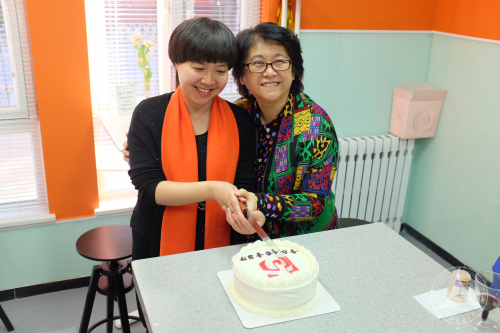 李俊梅院长和叶菁书记在教师之家的“开家仪式”上