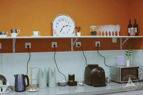 “教工之家”里灯光明亮,墙上用来装饰的彩色音符凸显着音乐与录音艺术学院的特点。“我们经常在这里办一些教师沙龙活动,”李俊梅院长边说边从烤箱里取出一盘麻花,“这是郑萍老师昨天排练前,特意为老师们做的。”老师们在工作疲惫的时候常常会到这里来喝一杯咖啡,吃一块点心。李洋红琳老师表示:“中午休息的时候我最喜欢和办公室的老师一起到这里晒晒太阳,聊聊天。”