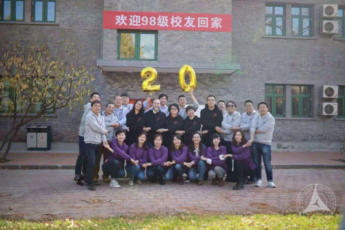 98级校友返校活动时各位老师和校友在53号楼前留影