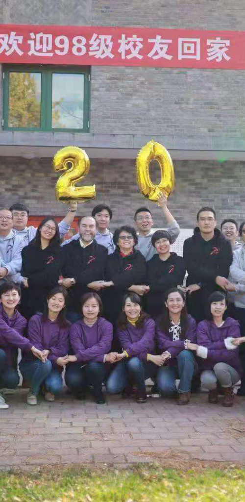 98级校友返校活动时各位老师和校友在53号楼前留影
