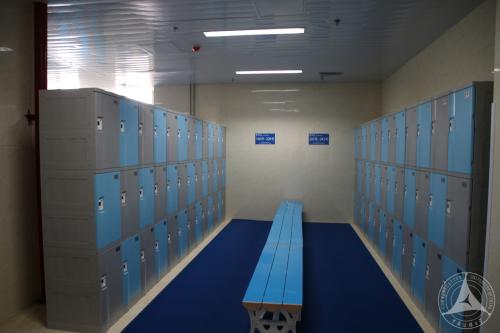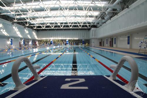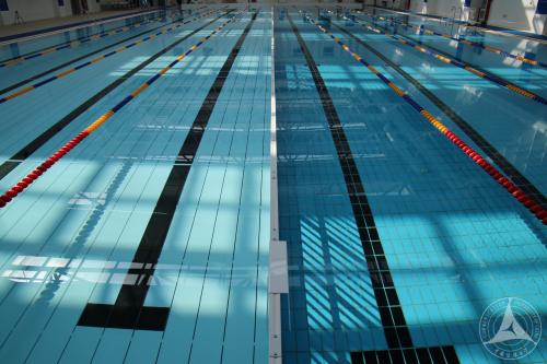 答:游泳池是50米的标准泳池,8条泳道,最两边的泳道3米宽,中间2.5米宽。水温27.5℃,符合国家26℃到28℃的标准。浅水区0.8-1.2米,深水区2米。男浴室有11个淋浴头,女浴室有19个。更衣室的话,有男用的255个储物柜,女用的210个。