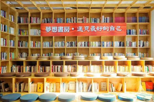 梦想书房坐落于我校32号楼文化产业管理学院102室,是由卜希霆老师营造的一个文化创意空间。墙壁、天花板、窗户上相连不断的井字木板,组成了层层书架;三层木质阶梯上摆放着麻绳编织的禅座,朴素净雅,营造出“不跳跃、不烦躁”的氛围。