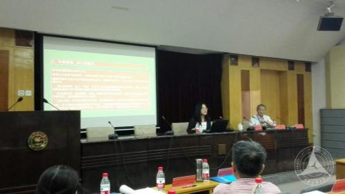 (吕艳君老师在2016年北京高教学会国际政治备课会上与同行交流当代世界经济与政治课教学经验)