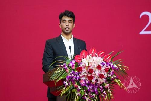 研究生(留学生)新生代表,新闻学院2019级新闻与传播(新闻实务方向)硕士研究生,埃及留学生大伟分享了自己在新华社中东总分社工作和阅读《习近平的七年知青岁月》的体验与感悟。怀着新闻梦,他勤奋攻读,成功考取了中国传媒大学。大伟表示,自己将继续用心学习,为中埃两国的友谊与新闻传媒事业的发展做出贡献。最后,他满怀深情地说:“世界那么大,中传是我家!”