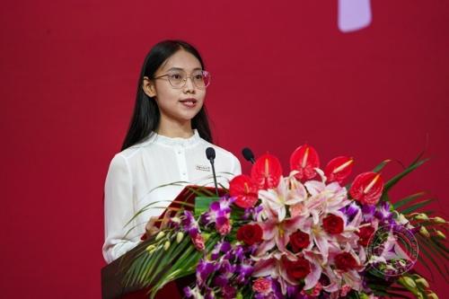 在校生代表,电视学院2018级国际新闻硕士生齐虹翕为2019级新生送上了自己的经验与感悟:其一,勤奋学习,不断探索;其二,热心公益,积极实践;其三,砥砺奋斗,充实自我。