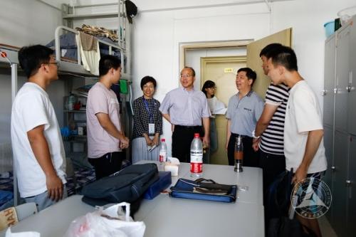 早晨七点,校内的保卫人员、学生志愿者,学校相关职能部门以及各学院工作人员早已就位,等待着前来报到的新生和家长。校党委陈文申书记、廖祥忠校长、姜绪范副书记、刘守训副校长亲自视察新生报到现场,与各学院负责人、同学们亲切交流,并前往学生公寓视察新生入住情况。