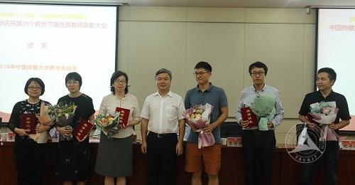 廖祥忠校长为“2019年中国传媒大学教学名师奖”获得者颁奖