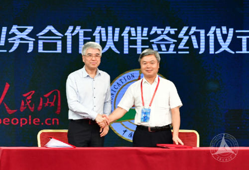 (通讯员 徐红梅  图片来源  人民网)9月10日下午,我校与人民网股份有限公司战略合作协议签约仪式在人民网1号演播厅“内容聚合分发业务战略发布暨‘人民智作平台’上线仪式”上隆重举行。廖祥忠校长出席活动并与人民网股份有限公司总编辑罗华共同签署协议。