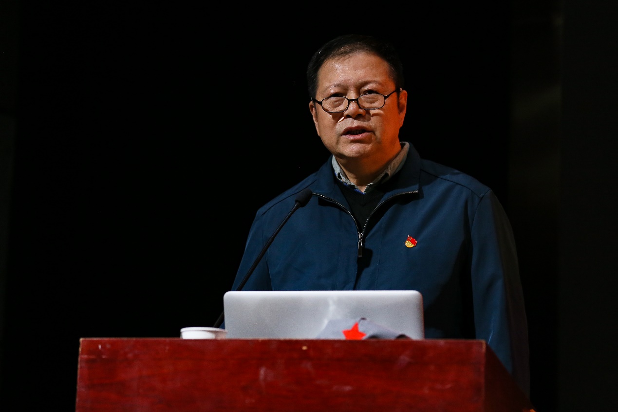 央视媒体人翟树杰应邀作主题报告,翟树杰老师结合大型档案纪录片《永远的红军》、焦点访谈特别节目《说不完的长征》,以及自己团队采访老红军的经历,以口述历史的形式讲述了许多鲜为人知的红军故事,回顾那段可歌可泣的历史,讴歌了红军战士为了理想信念前赴后继不怕牺牲的献身精神。翟树杰老师还带领大家重温“智勇坚定、排难创新、团结奋斗、不胜不休”的红军训词,激励大家牢记中国共产党人的初心和使命。
