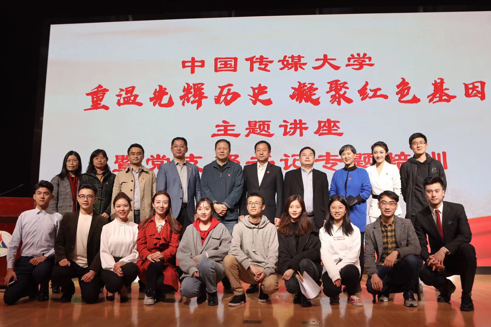 (通讯员 王琳 张梦婕 摄影 王雷亭 王一丹 范绮梦 张明佳 刘畅 耿培灏)10月30日下午,我校在中传讲堂举行“重温光辉历史,凝聚红色基因”主题讲座暨党支部书记专题培训活动。活动由党委组织部组织,各基层党委、党总支、直属党支部书记和副书记,组织员,党务干部,教工党支部书记,学生党支部书记,入党积极分子参加了培训。