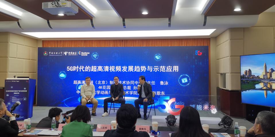 在圆桌讨论环节,中国传媒大学动画与数字艺术学院副院长张歌东、超高清视频(北京)制作技术协同中心副主任鲁泳和4k花园高级副总裁孙尧,围绕“5G时代超高清视频应用前景”进行了讨论。