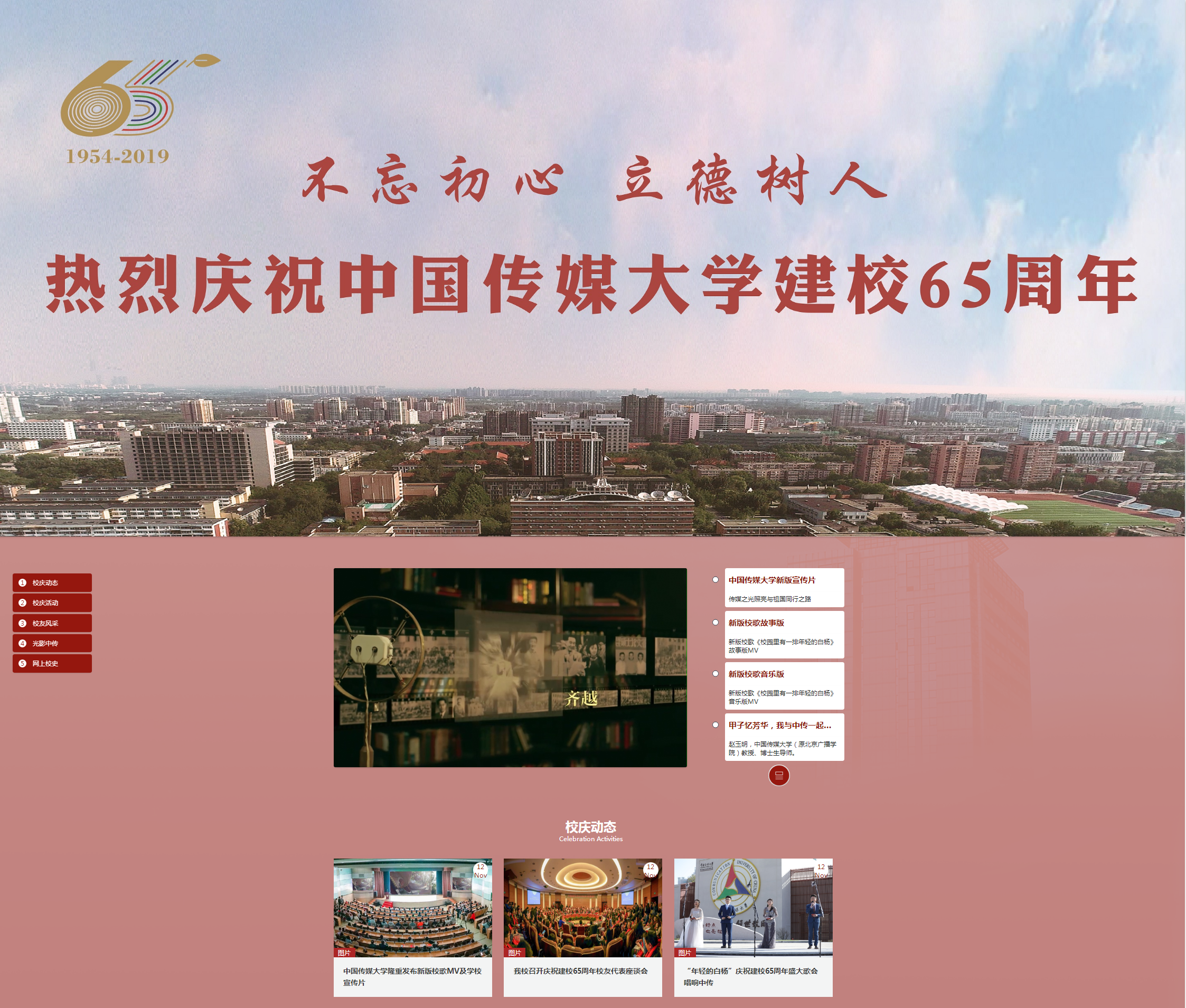 学校开通了校庆专题网站,设置校庆动态、校庆活动、校友风采、光影中传、网上校史等多个栏目,为广大师生、校友了解校庆,关注校庆搭建专门平台;学校官方网站白杨网发布了多篇图文并茂的综合报道,《中国传媒大学校报》推出八个版面的专刊。故事版校歌MV在学校官方B站一经发布,点击播放量接近10万,并且登上了哔哩哔哩音乐区榜单,位列第29位。