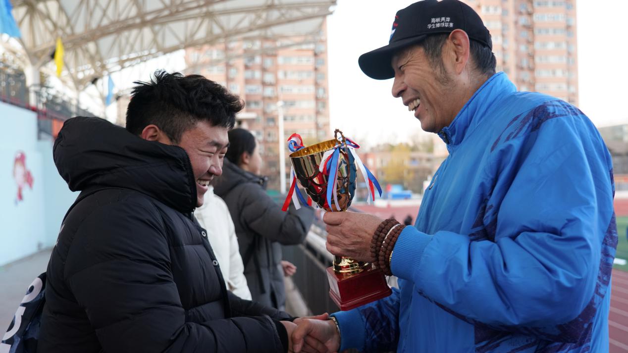 闭幕式上,学生工作部、体育部的老师为获得运动会总分一、二、三名和“体育道德风尚奖”“优秀组织奖”的学院颁奖。