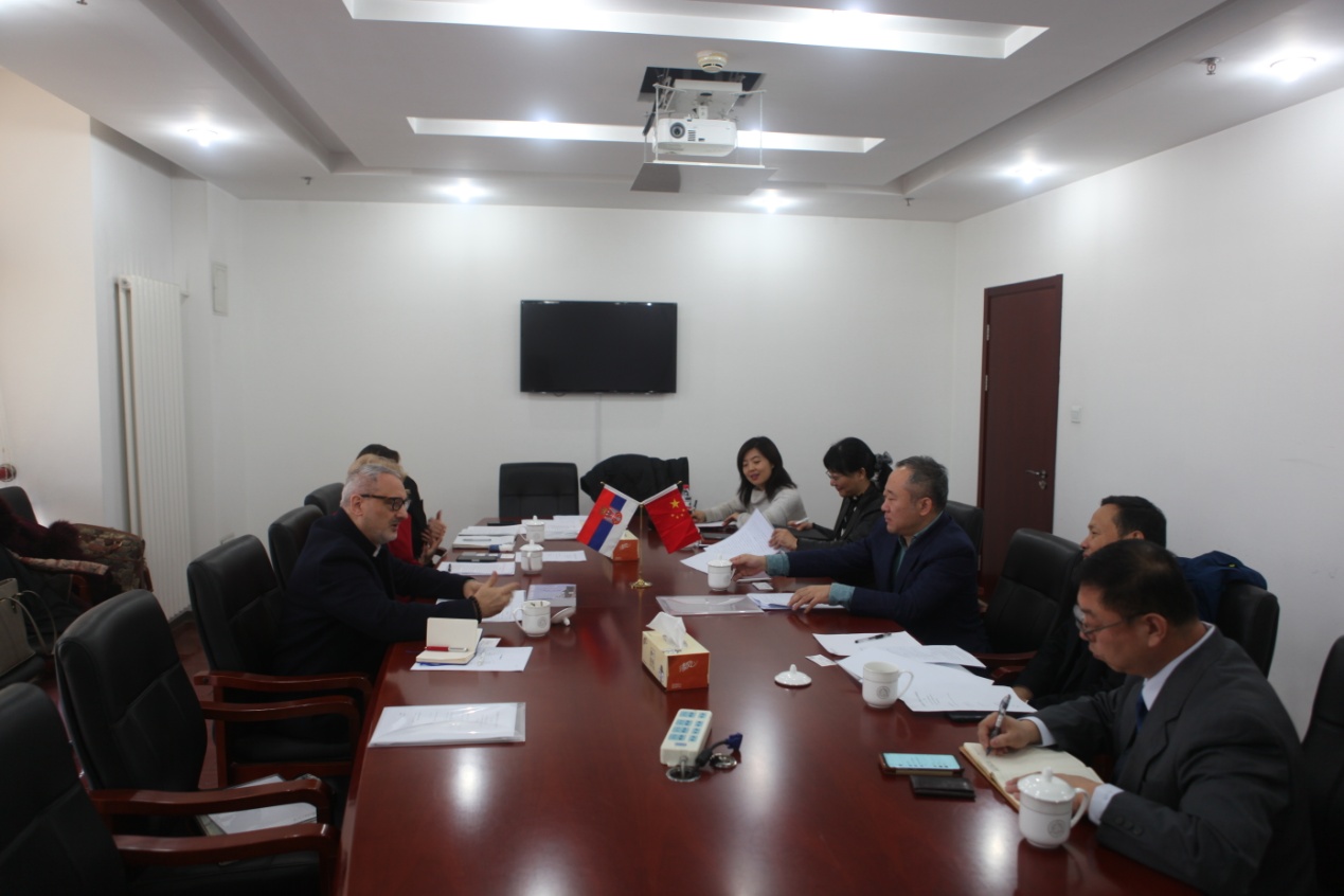 (通讯员 孙玉红 摄影 富饶)12月6日,我校共建塞尔维亚贝尔格莱德孔子学院理事会代表团一行来访我校,参加一年一度的理事会议。受贝尔格莱德大学校长伊万卡·波波维奇委托,贝尔格莱德孔子学院塞方院长、东欧著名汉学家普西奇教授与语言学院院长莲娜、孔子学院秘书莎拉代表塞方参会。我校段鹏副校长会见了普西奇院长一行,并作为理事会成员,与另两位理事会成员——国际交流与合作处处长舒笑梅、外语语言文化学院院长李佐文一同出席理事会议。国际交流与合作处副处长顾铁军、孔子学院办公室科长孙玉红参加了会议。