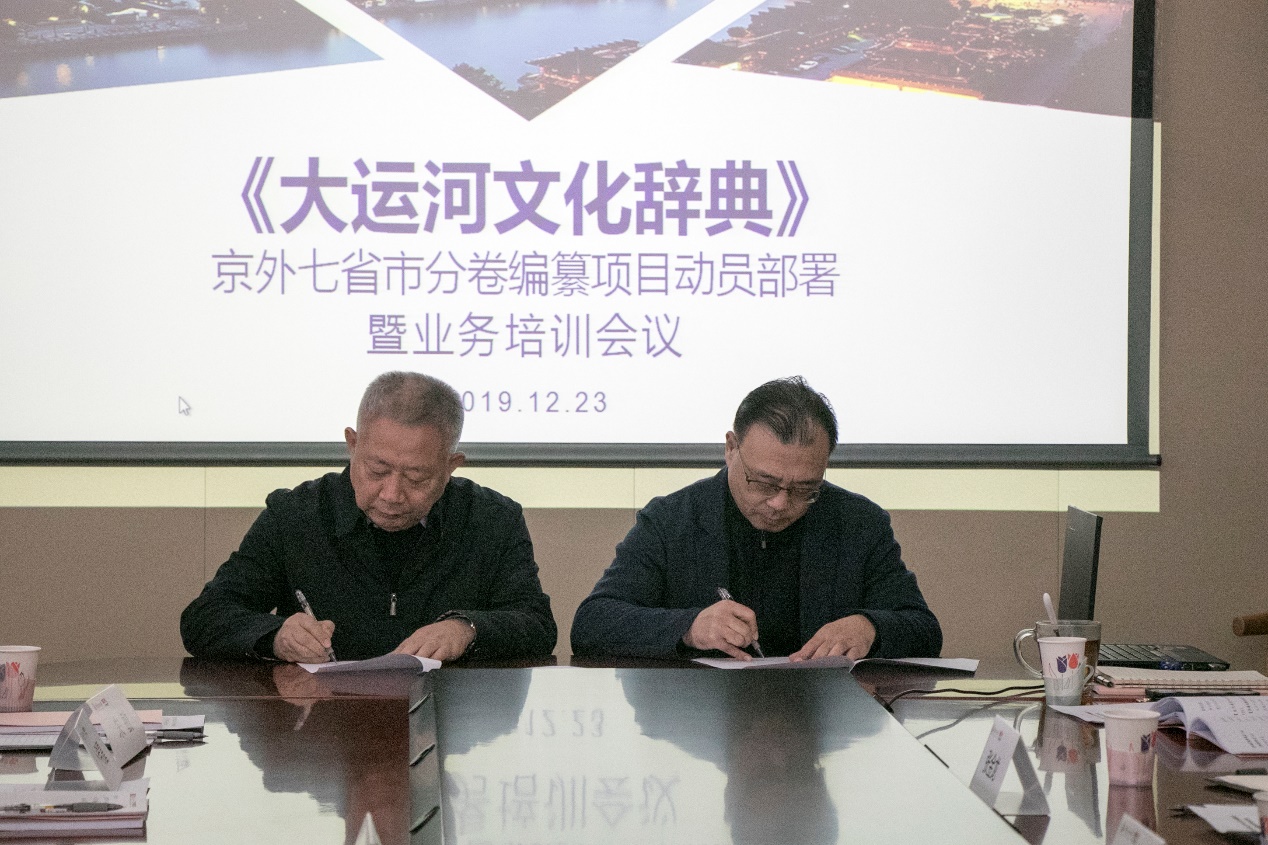 本次会议由北京市社科联党组书记、市社科规划办主任张淼主持,我校党委书记陈文申致辞,市委原常委、秘书长、人大常委会原副主任、《大运河文化辞典》主编段柄仁动员讲话并授课培训,我校文化产业管理学院院长范周部署编纂工作。北京市社科联、中国传媒大学文化产业管理学院、北京联合出版公司相关工作人员和专家学者参加会议。会上,北京联合出版公司与我校文化产业管理学院就《大运河文化辞典》京外七省市分卷编纂出版项目签订了合作协议。