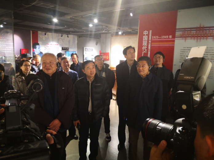 (通讯员 胡庭渝 摄影 肖雪)2019年是中国人民广播事业诞生79周年。12月30日下午,国家广电总局媒体融合发展司司长杨杰、科技司司长许家奇、安全传输保障司司长谢东晖、副司长杨晓东、公共服务司二级巡视员聂鑫、国网公司总经理梁晓涛、无线局总工徐忠、监管中心党委书记张宏、卫星直播中心主任杨一曼、广科院党委副书记郑思慧、规划院党委书记吕松山、设计院副院长何建平等领导组成考察团来到我校传媒博物馆参观学习,重温发展历程,增强使命担当。廖祥忠校长接待考察团领导,并陪同参观传媒博物馆。