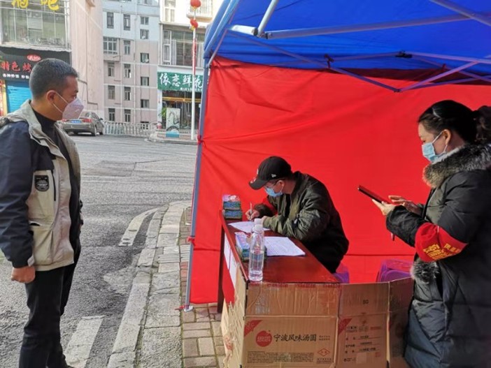 来自山东省淄博市的2017级信息管理与信息系统专业赵睿琦、贵州省六盘水市的2018级传媒经济专业刘毅洋两位同学分别参与社区志愿服务,在社区工作人员指导下,检查来往行人、测量体温,劝返外来人员、劝说居民少出门。
