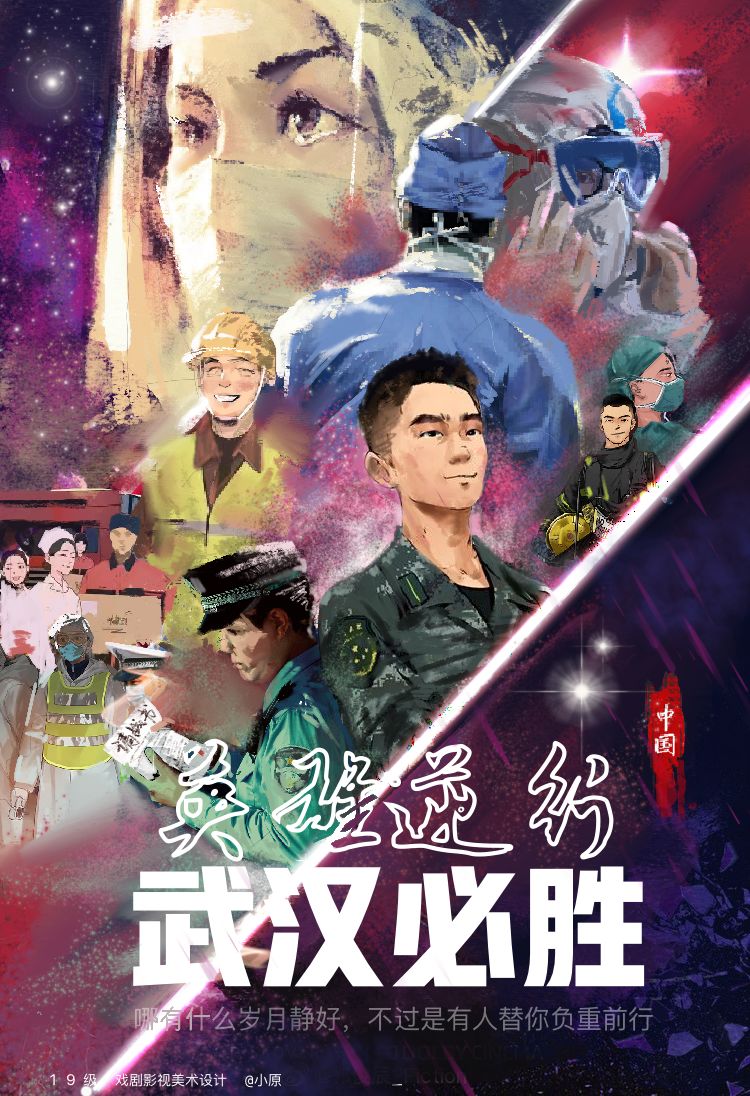 (通讯员 武瑶)近日,我校戏剧影视学院团委响应学校对于抗击疫情工作的统一部署,积极号召2019级戏剧影视美术设计专业的同学们发现身边为抗击疫情奉献的身影,利用自己的专业特长描绘突破城市的家国大爱,绘制防疫主题海报,形成了多幅作品:展现了白衣天使、志愿者、军人警察、基层干部抑或是防疫站医生母亲的形象。
