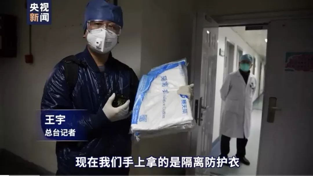 疫情爆发正是春节期间,医疗物资的供应和分配状况是公众关注的现实问题。当时,武汉最好的医院之一协和医院,被曝出严重的医疗物资短缺问题,立刻成为公众关注的焦点。硬核型新闻就要去现场找真相。王宇就拿着微博上疯传的几张医生自制口罩和防护服的图,去协和医院直播求证。