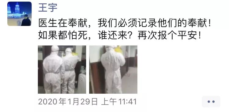 △1月29日王宇的朋友圈:必须记录医生们的奉献