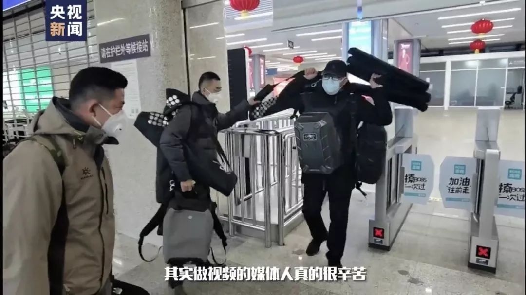 列车刚出站,王宇就举起手机,开始拍摄第一个vlog报道。“现在的时间是除夕下午17点30分…...今天我们中央广播电视总台新闻新媒体中心的四人小分队率先出发了!”  vlog里的王宇戴着口罩,神态镇定。
