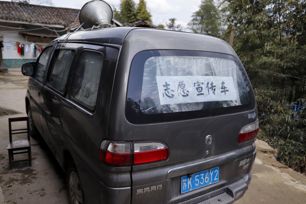 看着这一幕,周军开始忧心。疫情暴发以来,他一直在主流媒体、专业网站上关注着最新动态,他意识到这次新冠病毒来势汹汹,不可小觑。周军下定了决心:“哪怕一点一滴也好,我要做些什么来改变这样的现状。”摆在面前的第一个问题,就是找到一个适合的媒介宣传形式来填补有效信息的空缺。他想到了大喇叭这种古老却又深受村民欢迎、适合社区传播的媒介形式。但是大山里,村里的住户间隔较远,固定喇叭宣传距离毕竟有限,很难照顾到每一户村民。在周军正犯愁的时候,家里的面包车和大喇叭引起了他的注意:“如果把喇叭装在车上进行移动宣传,是不是就可以把疫情的信息捎给村里的每家每户了呢?”