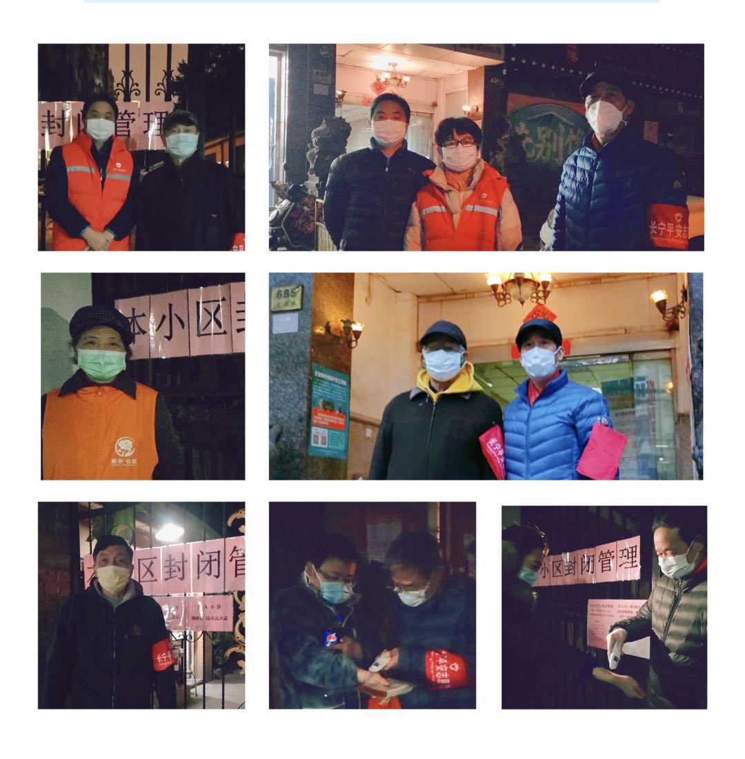 站在小区门口那位保安曾引起万鸿嘉的注意。他总身着社区统一的“平安长宁”小背心,为过往的居民们测量体温,从早上六点一直到晚上十点。这位保安的妻子跑到居委会反映,觉得自己丈夫的工作实在“太危险了”。没过几天,这位妻子也来到小区门口站岗。夫妻两个人一个测体温,一个帮助办理出入证。“我当过兵,不能做逃兵。总得有人要出来守护好大家。”他一边扒两口冷掉的午饭,一边说。