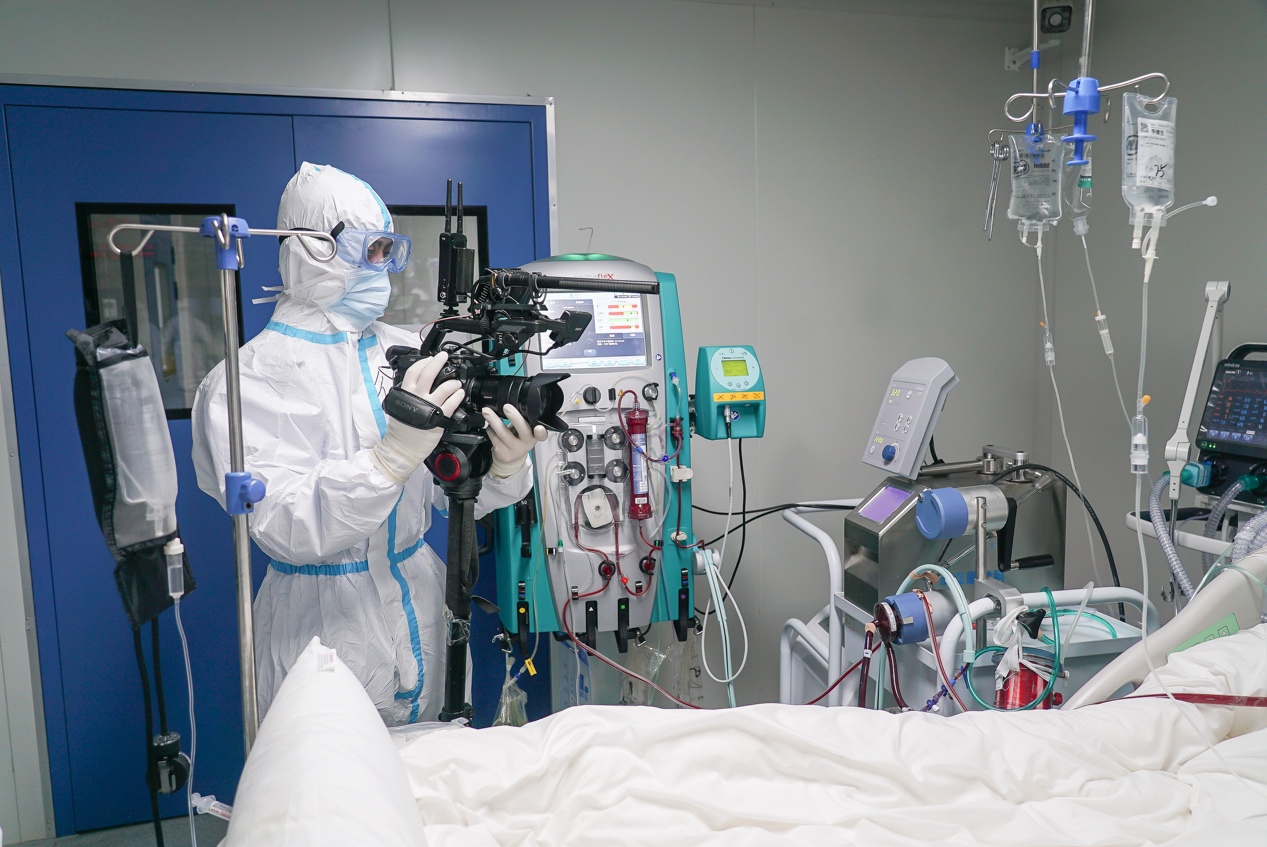 摄影师穿戴好防护装备准备进入ICU拍摄