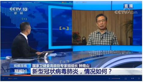 1月20日,中央广播电视总台新闻频道《新闻1+1》栏目播出的白岩松特别连线国家卫健委高级别专家组组长钟南山院士报道页面截图