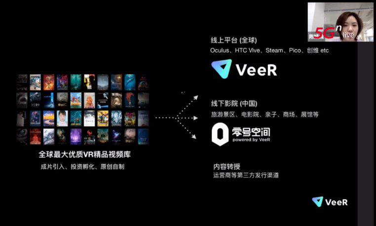 VeeR联合创始人兼CPO陈婧姝介绍了探索中的VR影视开发流程及商业模式,如围绕影视内容衍生的乐园、商场、景区等线下场景的VR体验影院。