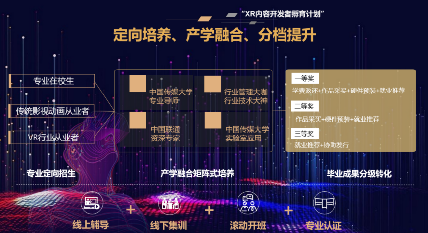 “XR内容开发者孵育计划”整合学校与业界资源,旨在从产业底层解决XR内容开发难点,即培养行业稀缺人才,又疏通产销通路,构建一条全新而有效的产业创新链。