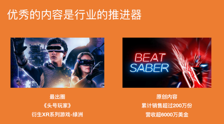 国内知名的虚拟现实开发者社区及VR开发者大赛运营商VRCORE创始人刘品杉分享了目前市场上流行的部分内容实例,展现了XR内容生态的广阔前景。