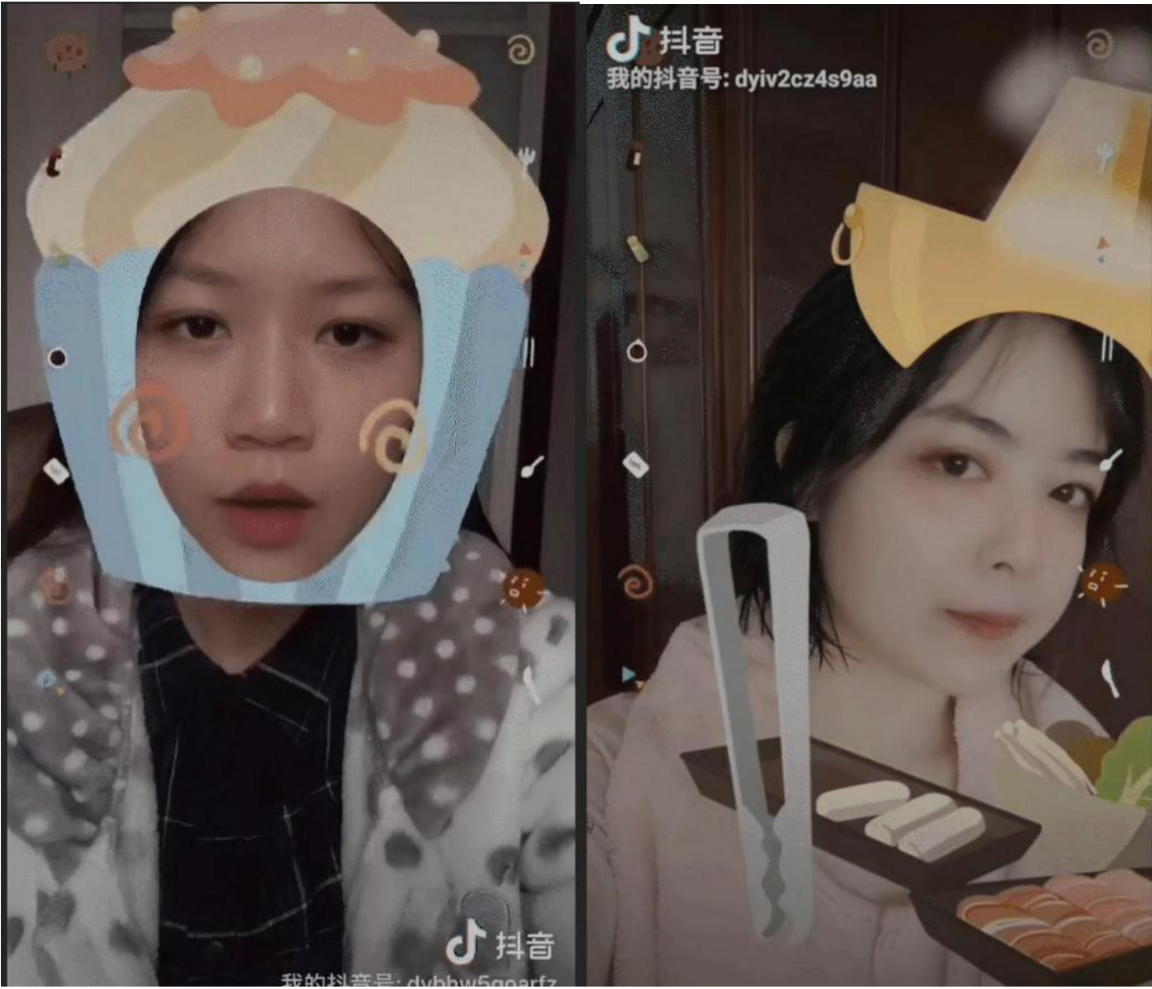 孟莹、王江珊、王静淳子:张嘴吃掉出现的食物,闭嘴变出相应头套。我们的快乐,会回来的!使用抖音拍同款,我们一起快乐吧。