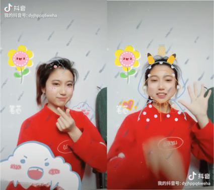韩紫琪,石羽宁“反差女神”贴纸:基于“dou掉包袱 我有我态度”主题,通过点头动作触发,产生由疫情宅家到复工的转变,呼吁大家以最快速度回到工作学习状态。