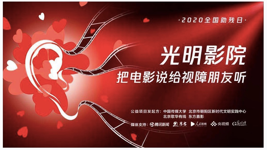 2020年5月17日是第30个全国助残日,在抗击新冠肺炎疫情期间,为了丰富视障人士的文化生活,中国传媒大学、北京市朝阳区新时代文明实践中心、北京歌华有线电视网络股份有限公司、东方嘉影电视院线传媒股份公司联合发起光明影院“云上光明”系列活动,邀请全国视障朋友在线参与。