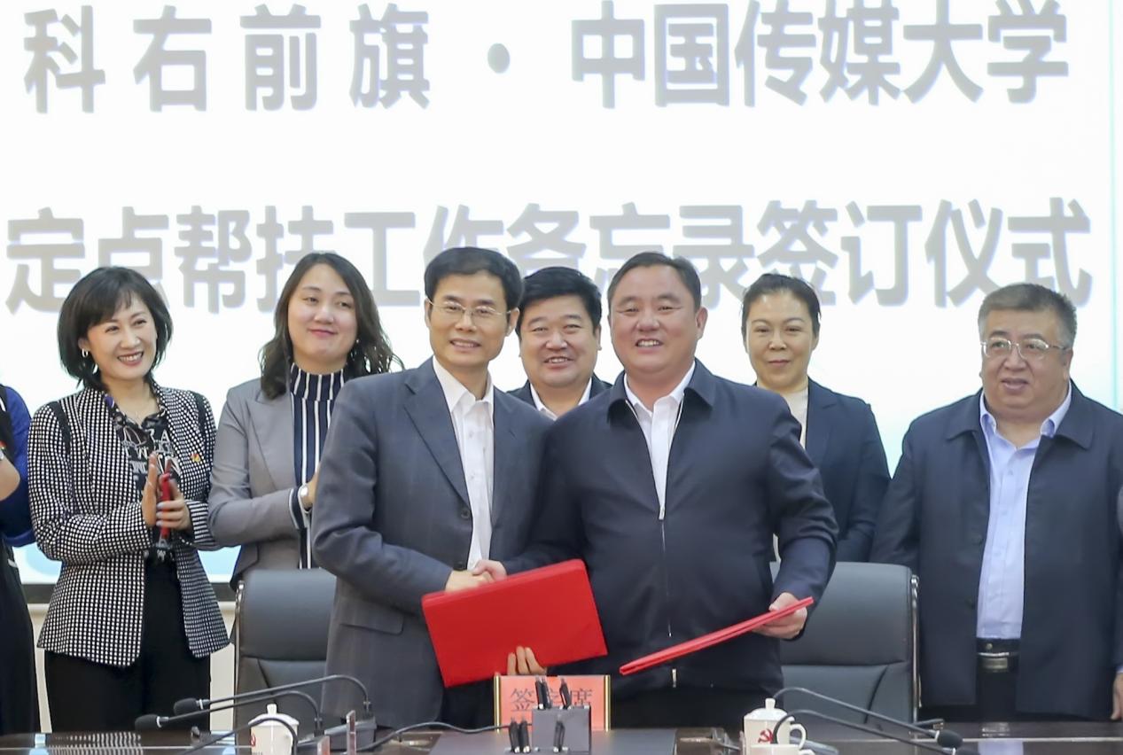 会上,陈文申书记与朱成帮书记共同签署《中国传媒大学 科尔沁右翼前旗人民政府定点帮扶工作备忘录》。