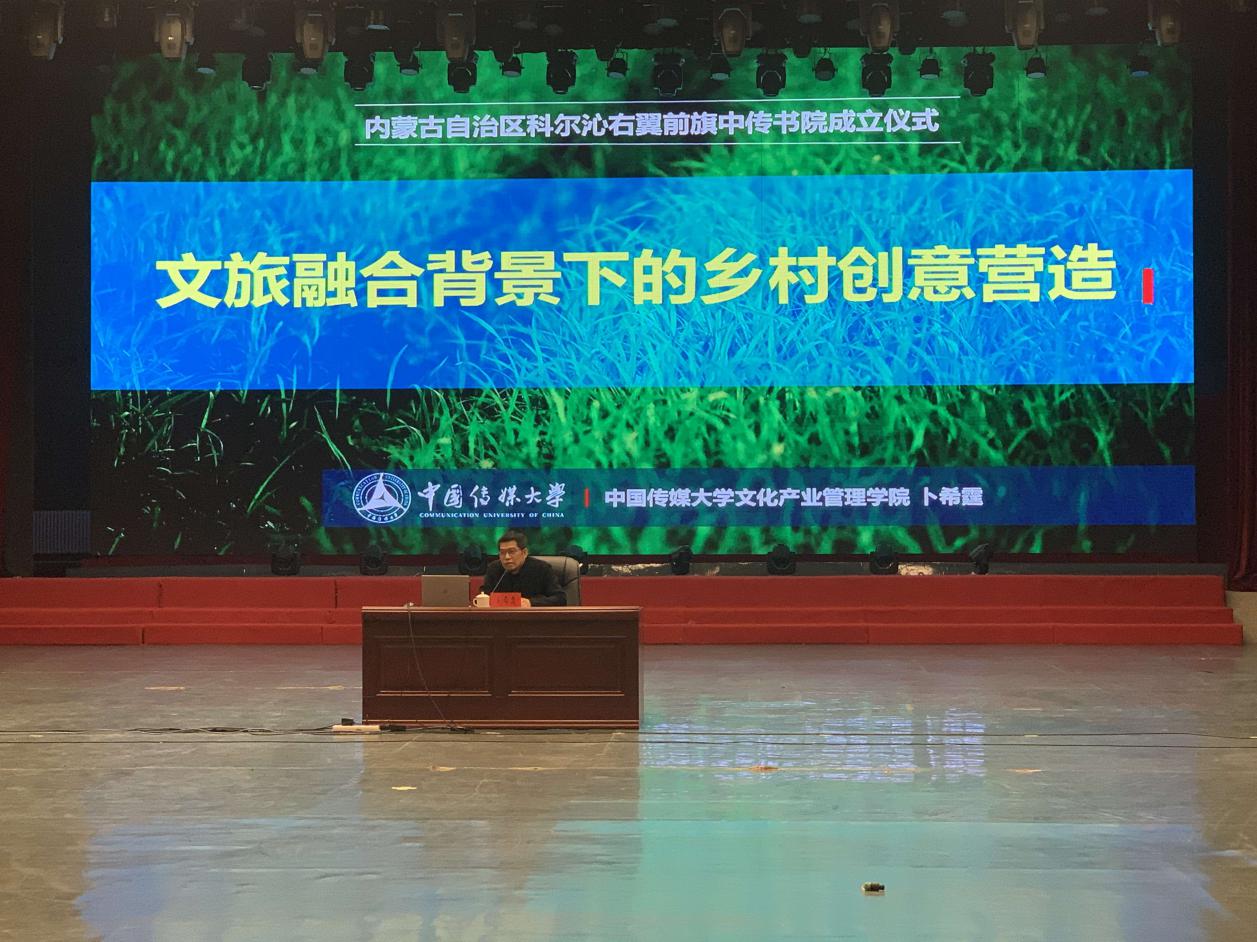 随后,文化产业管理学院党总支书记卜希霆作“文旅融合背景下的乡村创意营造”专题讲座,科右前旗包括旗委、旗政府有关领导在内的250多人参加培训。